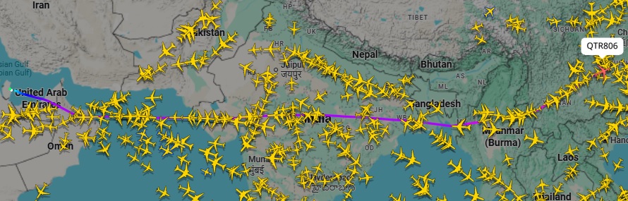 ★画像は4/16(木)15:00現在のドーハ空港のルートのスクリーンショットです。
